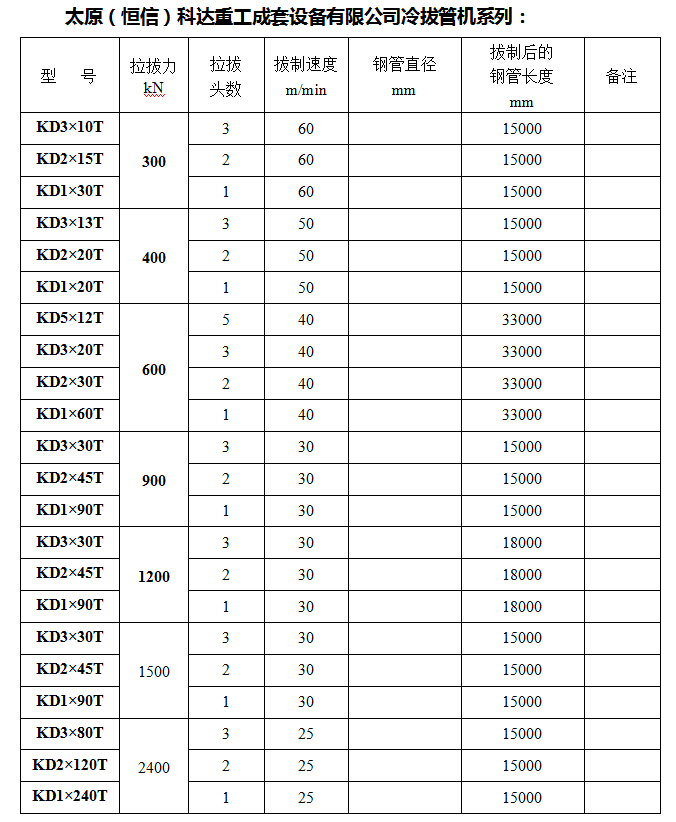 冷拔機(jī)設(shè)備能力概述(按噸位選型時(shí)上下限不同)